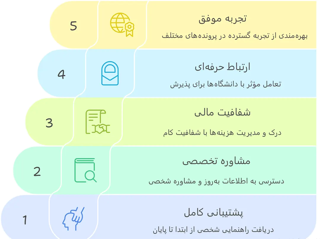 در نهایت، هدف ما تنها دریافت پذیرش نیست؛ هدف ما این است که شما با آرامش و آمادگی کامل وارد کشور مقصد شوید و تحصیل خود را در مسیر درست ادامه دهید.
